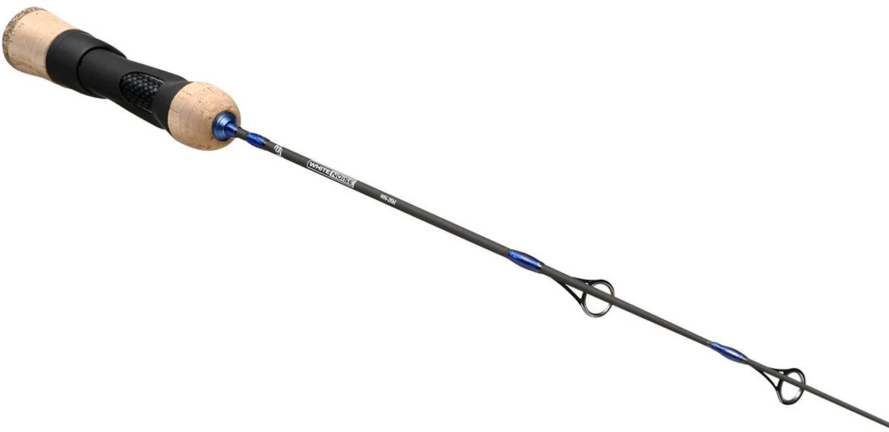 The 13 Fishing White Noise Ice Rods are designed for ice fishing techniques. They feature durable solid Toray graphite blanks and hidden Evolve reel seat.