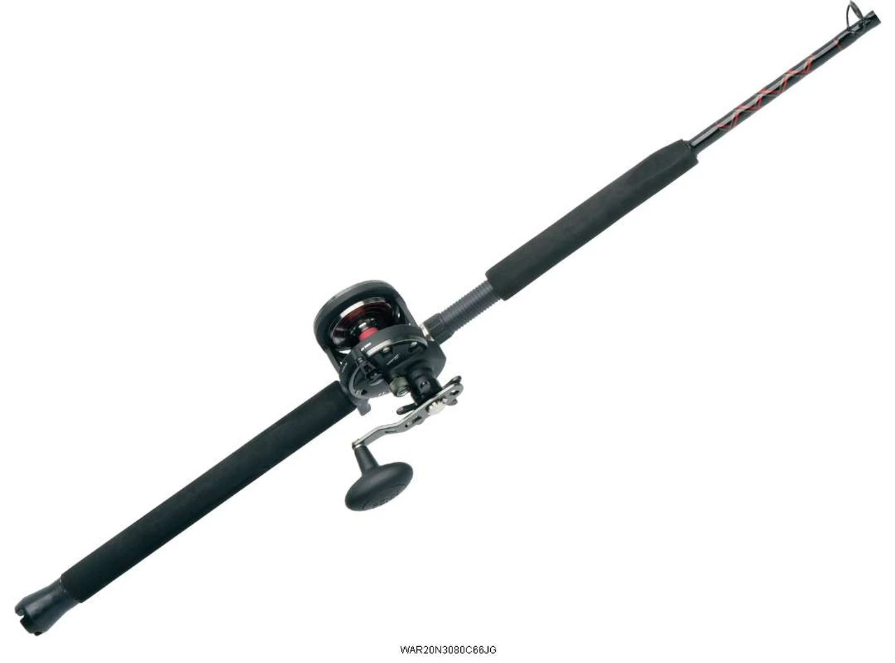 Penn Warfare Star Drag Combos are affordable and extremely versatile for all-around use. There are two Penn Warfare Star Drag Combo models: The WAR20N3080C66JG with tubular glass blank, and the WAR301525C70LB with tubular glass blank and solid glass tip. Both models feature a heavy-duty graphite reel seat, a triangle EVA foregrip, and stainless steel guides with aluminum oxide inserts. With a lightweight design and high line capacity, Penn Warfare Star Drag Combos offer superior fish-fighting power.